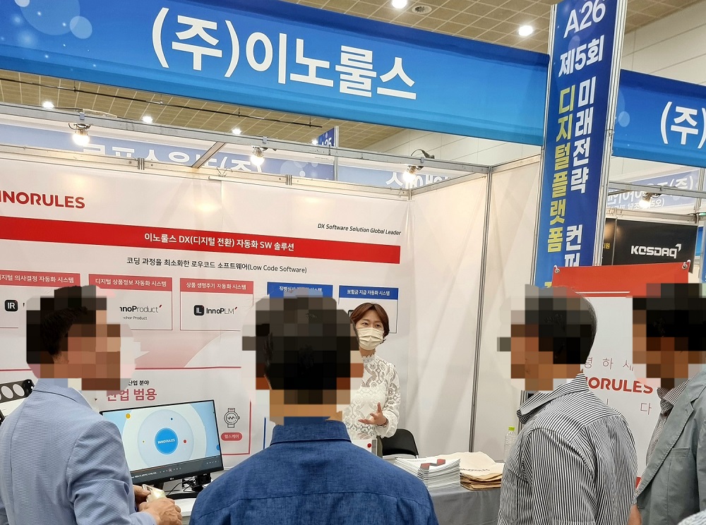 한편 이노룰스는 행사장 내 부스 전시를 통해 △이노룰스(InnoRules) △이노프로덕트(InnoProduct)에 대한 소개 영상을 비롯해 주요 디지털 전환 자동화 제품군인 △이노피엘엠(InnoPLM) △이노엠유에스(InnoMUS) △이노클레임(InnoClaim)에 대한 솔루션을 소개하고, 부스 방문객에는 에코백을 선물하는 이벤트가 진행됐다.